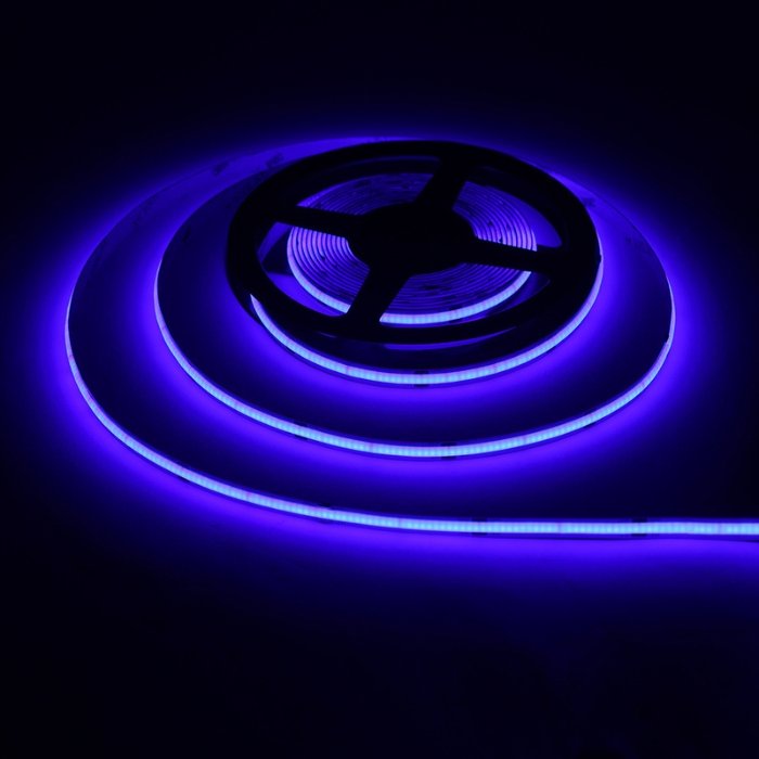 Taśma LED niebieska COB 24V renomowanego producenta Lux Miners zapewnia wysoką jakość wykonania z naciskiem na doskonałe właściwości mechaniczne i znakomite parametry świetlne. Przy jej projektowaniu i produkcji położono nacisk na uzyskanie dokładnego i wiernego odwzorowania niebieskiego światła.
