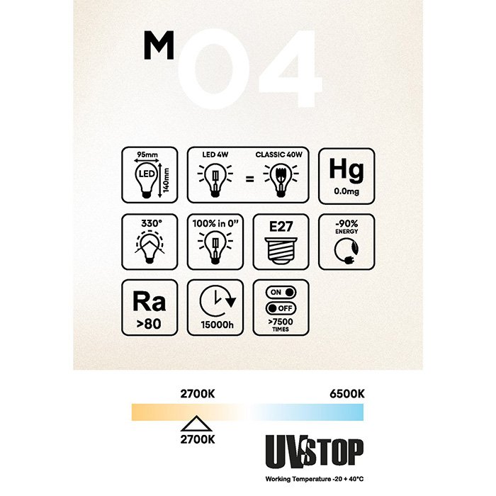 Mleczna żarówka LED BeBulbs-M z gwintem E27 to energooszczędne źródło światła o długiej żywotności. Efektowny okrągły kształt przypominający globus G95 (Globe – w najszerszym miejscu Ø 95 mm) idealnie komponuje się z popularnymi oprawami oświetleniowymi łącząc klasyczny design z nowoczesną technologią LED. Precyzyjne wykonanie techniczne w połączeniu z renomowaną jakością marki BeBulbs gwarantuje doskonałe właściwości świetlne, wysoką wydajność i maksymalną satysfakcję z codziennego użytkowania.