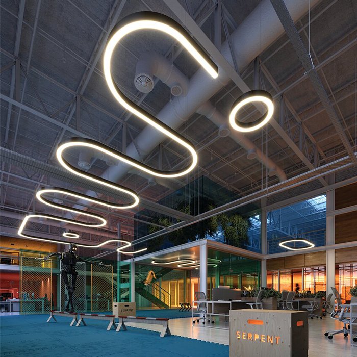 Konstrukcja oprawy liniowej SERPENT L NT 3m przynosi największe korzyści, gdy jest wykorzystana w kompleksowym systemie oświetleniowym SERPENT. Inspirację można zaczerpnąć z #tablink#videa#filmu produktowego##. System ten idealnie nadaje się do tworzenia wielokątnych, natynkowych opraw sufitowych, dostosowanych do indywidualnych wymagań inwestora.
