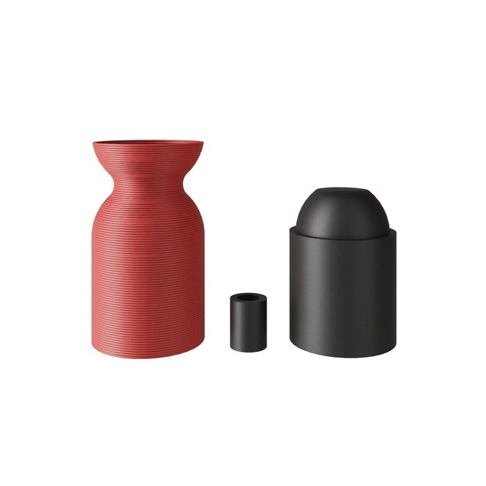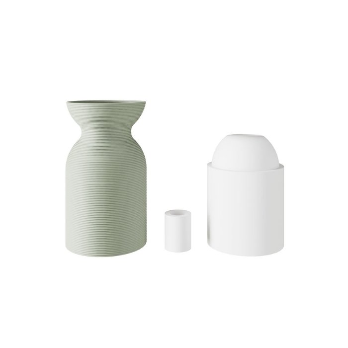 - Zewnętrzna osłona dekoracyjna wykonana z tworzywa sztucznego pochodzącego z recyklingu, wyprodukowana w technologii druku 3D – jest lekka, wytrzymała i przyjazna dla środowiska. Delikatnie paskowana powierzchnia o charakterystycznych koncentrycznych okręgach tworzy oryginalną teksturę, która nadaje pomieszczeniu wizualną głębię.