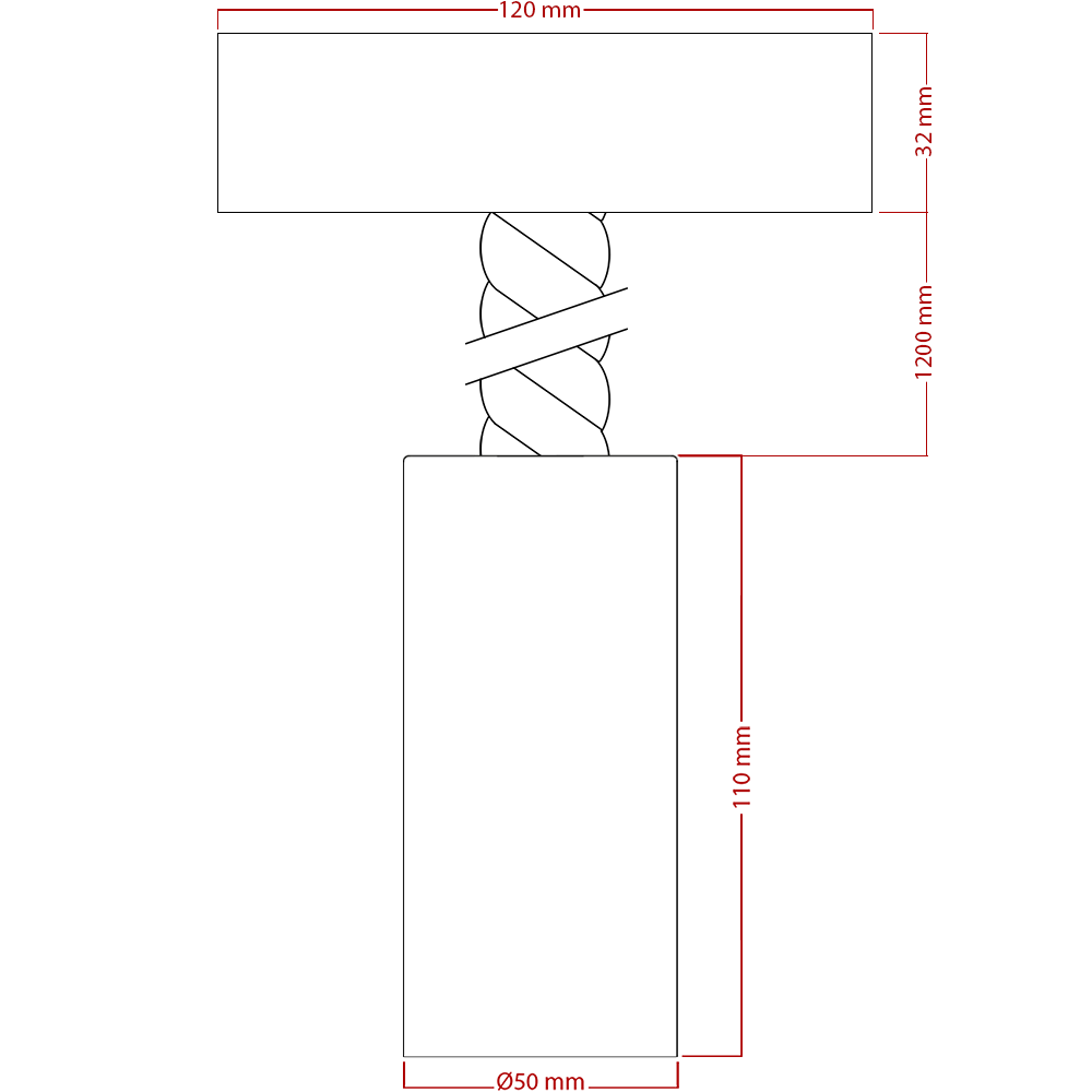 - Kabel w sznurze 3x 0,75 mm o długości ≈ 1,2 m i Ø 24 mm – o plecionym wykonaniu, które idealnie pasują do pozostałych elementów. Długość można łatwo skrócić w zależności od potrzeb.