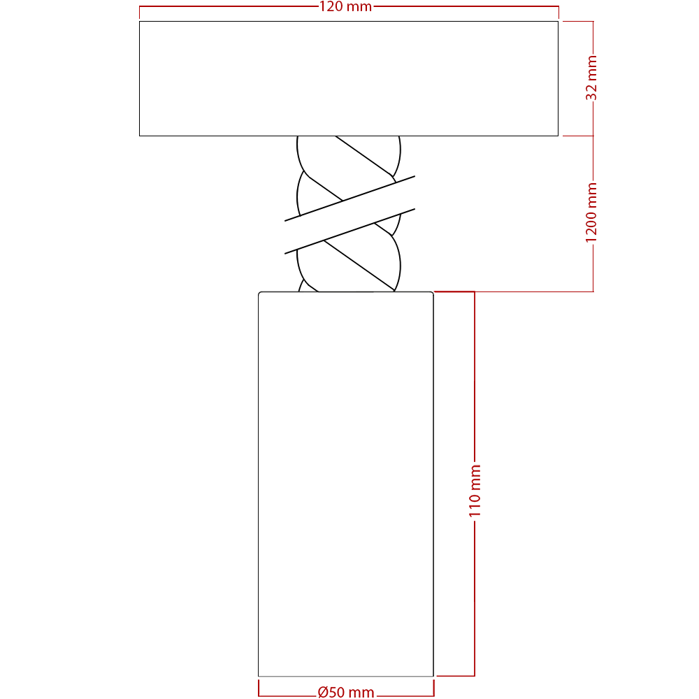- Kabel w sznurze 3x 0,75 mm o długości ≈ 1,2 m i Ø 30 mm – o plecionym wykonaniu, które idealnie pasują do pozostałych elementów. Długość można łatwo skrócić w zależności od potrzeb.