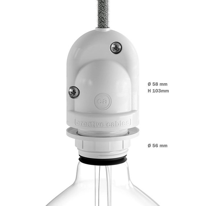 - Zewnętrzna i wewnętrzna część oprawki jest wykonana z tworzywa termoplastycznego (odpowiedniego do kabla 2x1 mm | nie wymaga uziemienia) – nowoczesnego tworzywa technicznego znanego ze swojej wysokiej wytrzymałości i odporności na obciążenia mechaniczne. Jego niska waga zmniejsza jednocześnie obciążenie całej oprawy oświetleniowej, nie naruszając jej stabilności i niezawodności. Specjalny żel izolacyjny wraz z membraną uszczelniającą ściśle przylegającą do trzonka żarówki zapewniają niezawodne uszczelnienie i umożliwiają osiągnięcie stopnia ochrony IP65 przy zastosowaniu żarówek o kształtach A60, ST64, G95 i G125. Praktyczną zaletą jest możliwość ukrytego podłączenia okablowania w dwóch kierunkach, co docenisz zwłaszcza podczas montażu girland świetlnych.