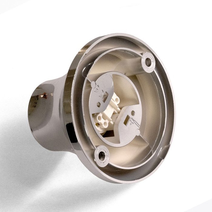 - Wewnętrzna i zewnętrzna część oprawki jest wykonana z tworzywa termoplastycznego (odpowiedniego do kabla 3x0,75 i 2x0,75 mm | nie wymaga uziemienia) – nowoczesnego tworzywa technicznego znanego ze swojej wysokiej wytrzymałości i odporności na obciążenia mechaniczne. W zależności od wybranego koloru lub wykończenia powierzchni ma elegancki lub wyrafinowany wygląd.