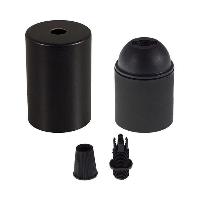 Metalowa oprawka do żarówki E27 Metala składa się kilku precyzyjnie wykonanych części, które dokładnie do siebie pasują i tworzą zwartą i funkcjonalną całość. Konstrukcyjnie składa się z obudowy zewnętrznej (osłona dekoracyjna) i własnej oprawki funkcjonalnej przeznaczonej do umieszczenia żarówki: