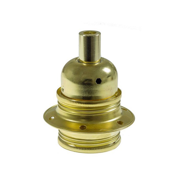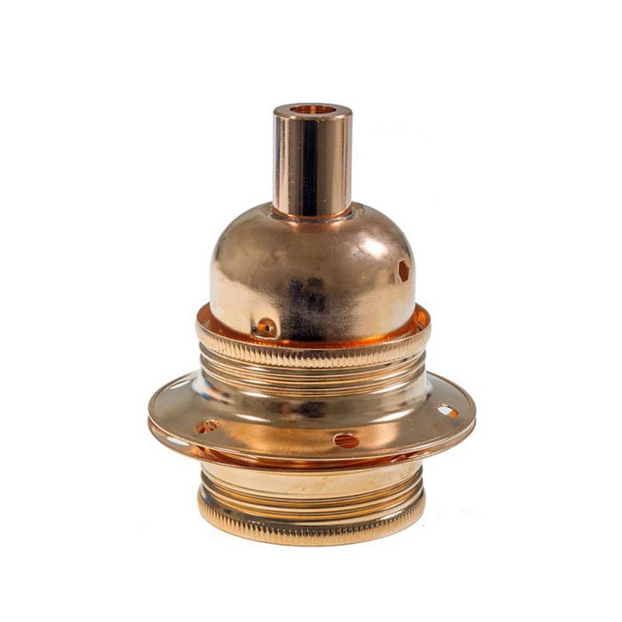 Metalowa oprawka E27 retro z kołnierzem na klosz o oznaczeniu Metalnut łączy w sobie niezawodną funkcjonalność i styl retro minionych dekad. Dzięki gwintowi na obwodzie z pierścieniem można łatwo zamocować klosze do lamp od strony zewnętrznej, co pozwala na różnorodne zastosowanie podczas produkcji lub renowacji żyrandoli i lamp wiszących. Wykorzystaj oprawkę retro metalową Metalnut do żarówki z dużym gwintem E27 zwłaszcza tam, gdzie sama żarówka pełni rolę głównego elementu designu.
