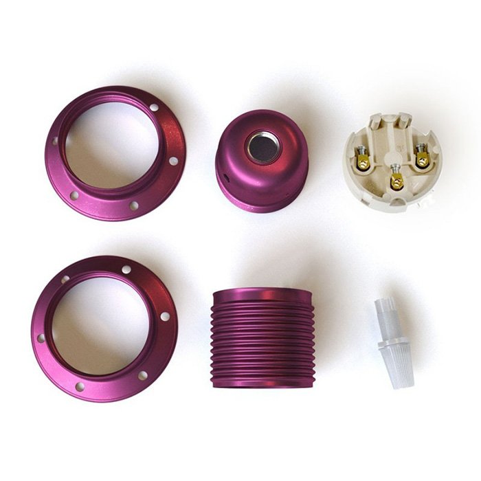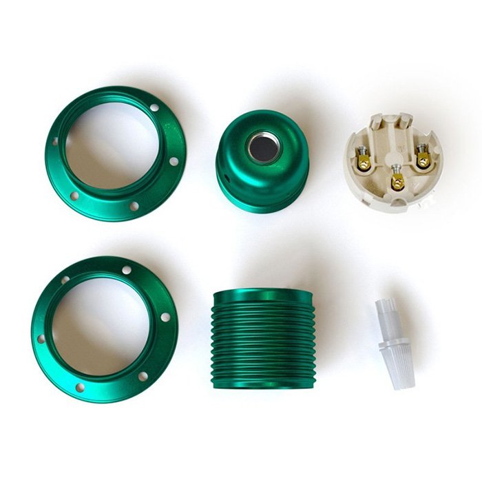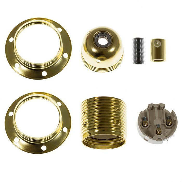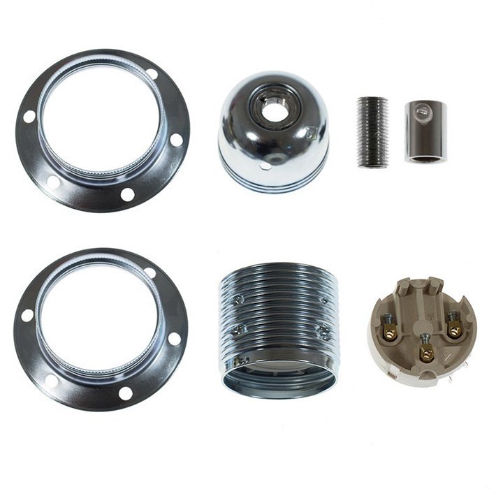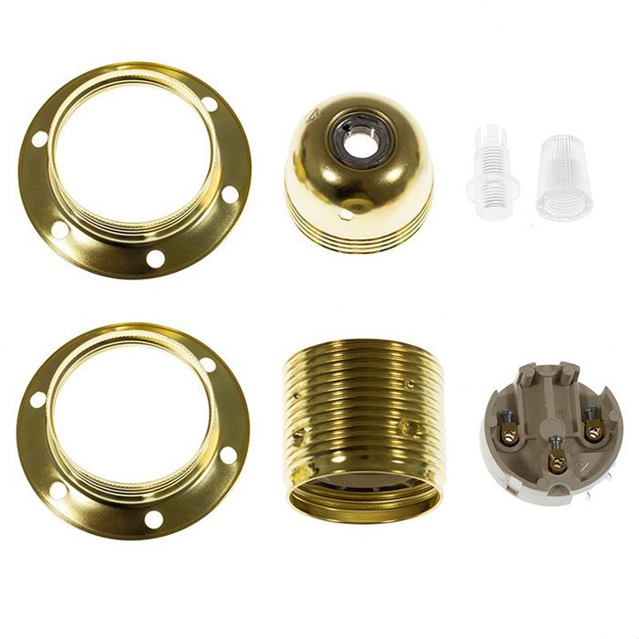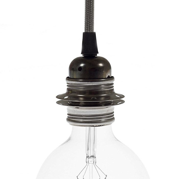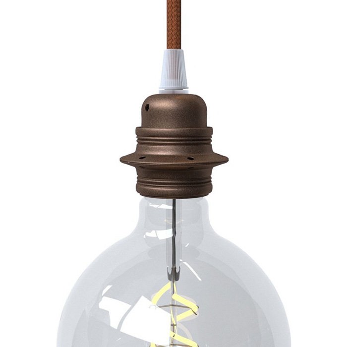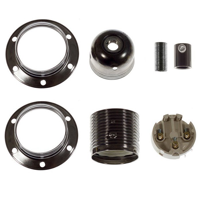 Metalowa oprawka żarówki retro E27 z możliwością montażu klosza Metalnut składa się kilku precyzyjnie wykonanych części, które dokładnie do siebie pasują i tworzą zwartą i funkcjonalną całość. Konstrukcyjnie składa się z obudowy zewnętrznej (osłona dekoracyjna i własnej oprawki funkcjonalnej przeznaczonej do umieszczenia żarówki: