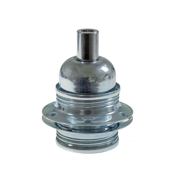 Metalowa oprawka E27 retro z kołnierzem na klosz o oznaczeniu Metalnut łączy w sobie niezawodną funkcjonalność i styl retro minionych dekad. Dzięki gwintowi na obwodzie z pierścieniem można łatwo zamocować klosze do lamp od strony zewnętrznej, co pozwala na różnorodne zastosowanie podczas produkcji lub renowacji żyrandoli i lamp wiszących. Wykorzystaj oprawkę retro metalową Metalnut do żarówki z dużym gwintem E27 zwłaszcza tam, gdzie sama żarówka pełni rolę głównego elementu designu.