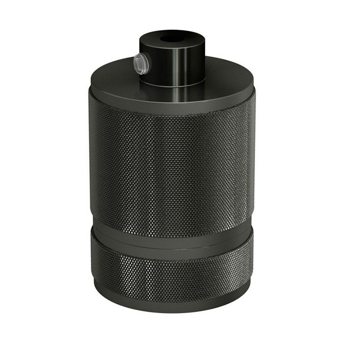 Metalowa designerska oprawka żarówki E27 z możliwością montażu klosza Metalmill składa się z kilku precyzyjnie wykonanych części, które dokładnie do siebie pasują i tworzą zwartą i funkcjonalną całość. Konstrukcyjnie składa się z obudowy zewnętrznej (osłona dekoracyjna i własnej oprawki funkcjonalnej przeznaczonej do umieszczenia żarówki: