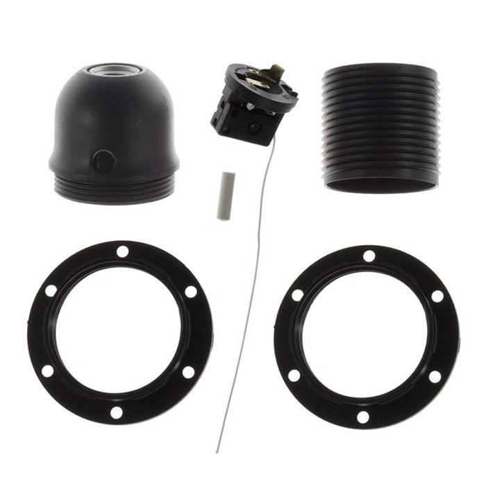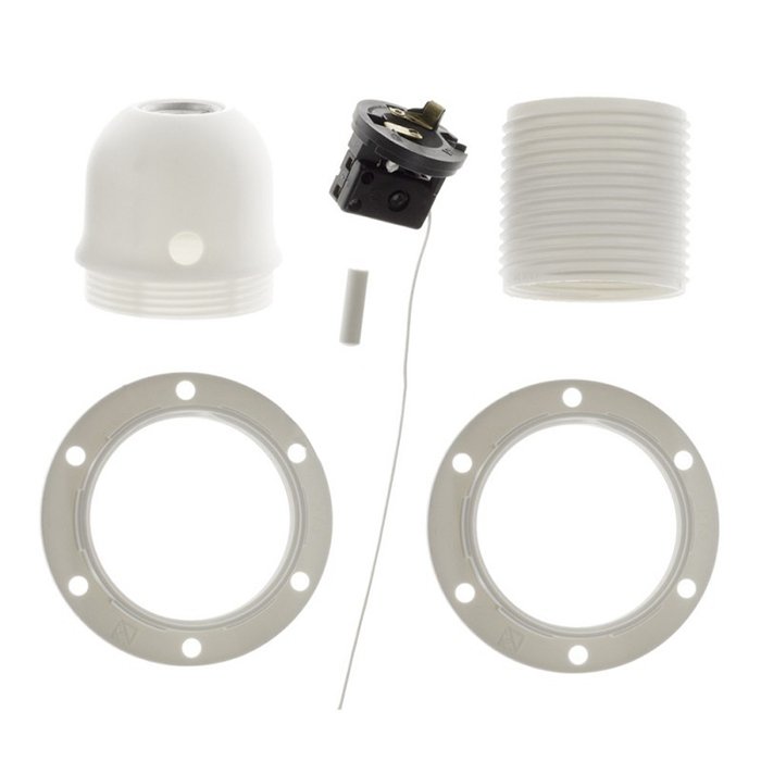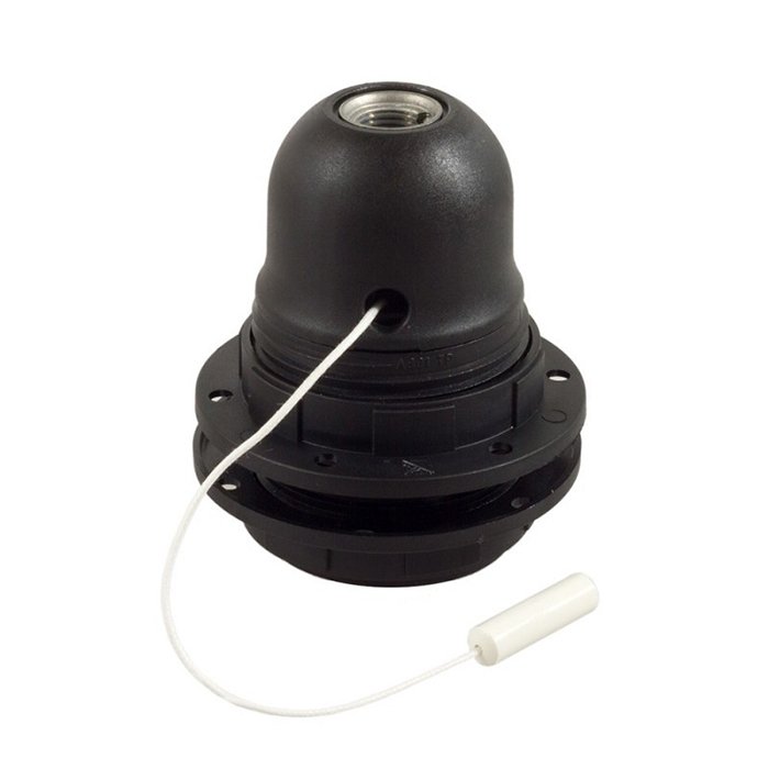 Plastikowa oprawka z kołnierzem na klosz E27 i wyłącznikiem sznurkowym o oznaczeniu Plastila-SW łączy w sobie niską wagę i różnorodność zastosowania przy produkcji żyrandoli i lamp wiszących. Dzięki gwintowi na obwodzie z pierścieniem można łatwo zamocować klosze do lamp od strony zewnętrznej. Zintegrowany wyłącznik sznurkowy w oprawce zapewnia wygodną obsługę oświetlenia bez konieczności stosowania wyłącznika ściennego. Wykorzystaj plastikową oprawkę z wyłącznikiem sznurkowym Plastila-SW do żarówki z dużym gwintem E27 jako funkcjonalne rozwiązanie, w którym lampa z kloszem odgrywa zasadniczą rolę w ogólnym wyglądzie i funkcji oświetlenia.