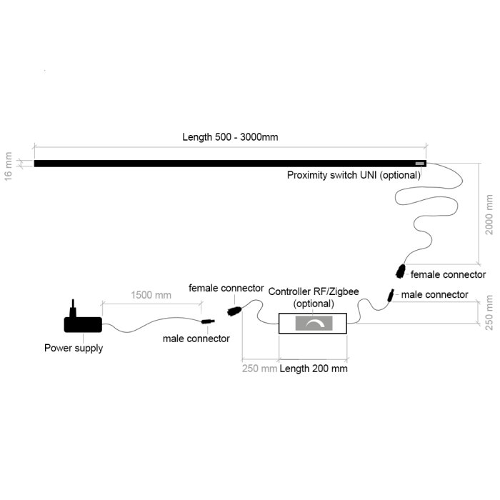 - Ściemniacz bezdotykowy do listwy LED - to niewielki element elektroniczny zintegrowany bezpośrednio z listwą liniową.Umożliwia on włączanie/wyłączanie oraz zmianę jasności za pomocą gestów. Liniowa lampa pod szafkę kuchenną z włącznikiem i możliwością ściemniania oferuje wygodne i szybkie sterowanie bez konieczności stosowania dodatkowego sprzętu lub skomplikowanego okablowania.