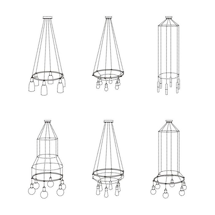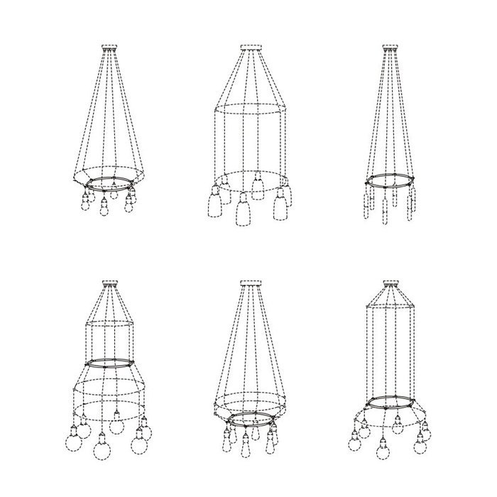 Rama lampy Cage-RN otwiera przestrzeń dla kreatywnego montażu i wyglądu lamp wiszących. W połączeniu z kablami i komponentami systemu COMPACT 62 z naszej oferty zyskujesz niemal nieograniczone możliwości indywidualnej produkcji i tworzenia oryginalnych rozwiązań oświetleniowych.
