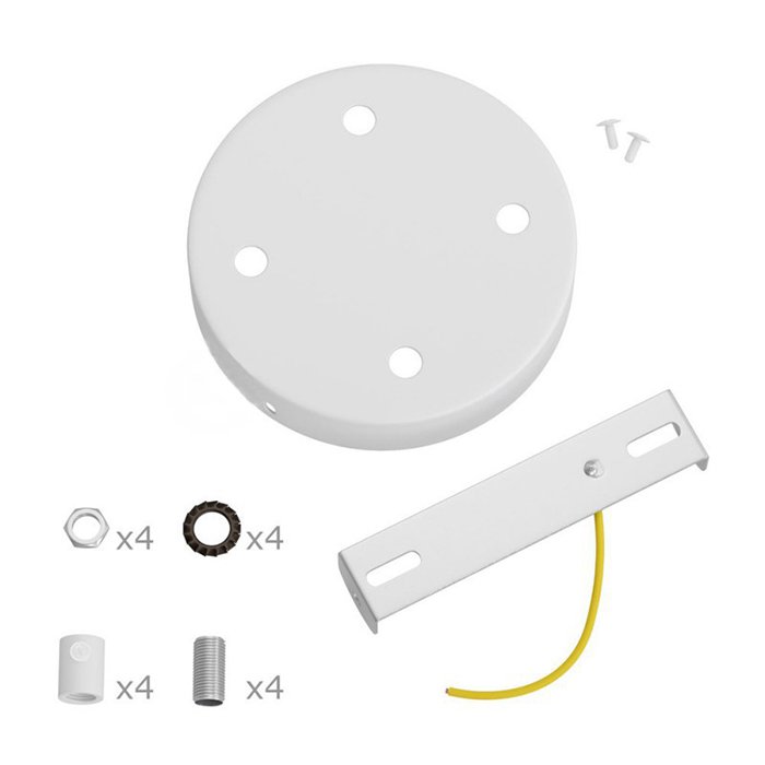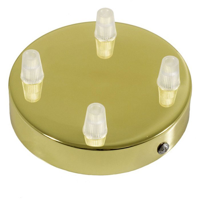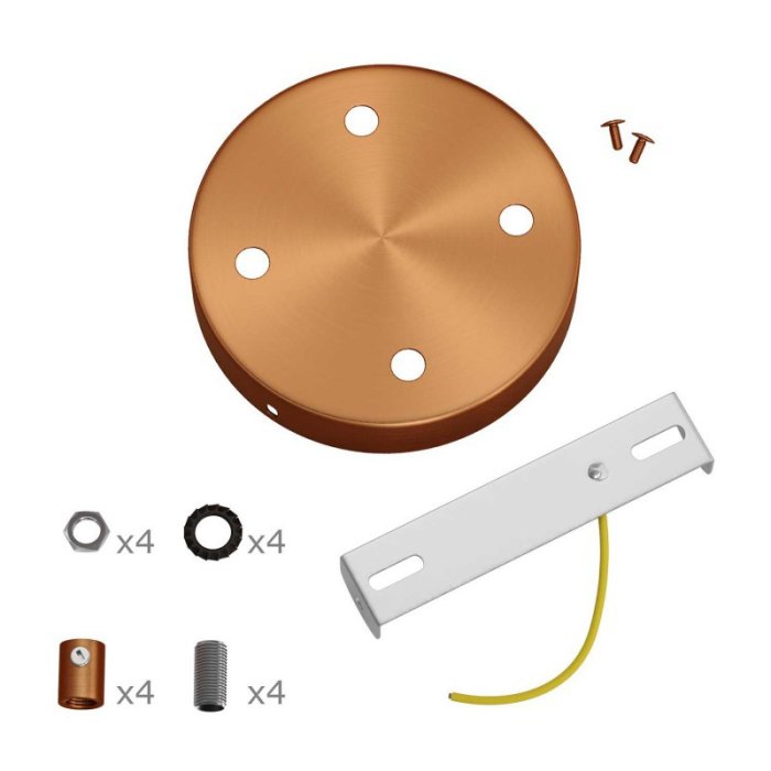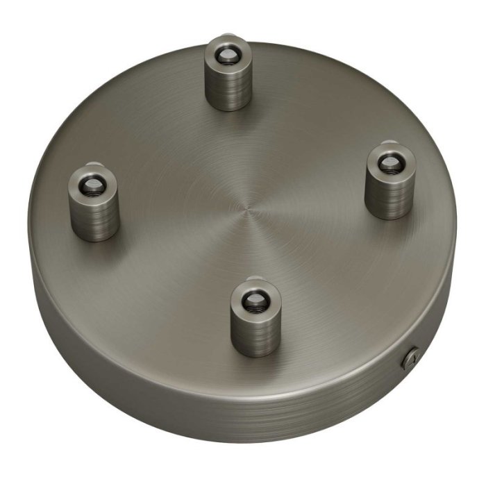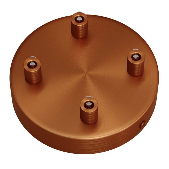 Metalowa podsufitka do lampy z czterema otworami o oznaczeniu I4-Metalure łączy w sobie funkcjonalność i stylowe wykończenie, które można wykorzystać do montażu lub renowacji opraw oświetleniowych. Jej kompaktowe wymiary o Ø 120 mm zapewniają estetyczne wykończenie montażu oprawy oświetleniowej na powierzchni i podłączenie do instalacji elektrycznej. Cztery wyjścia kablowe umożliwiają stworzenie zestawu lamp wiszących z jednego punktu przyłączeniowego na suficie, a jednocześnie otwierają kreatywne możliwości tworzenia oryginalnych kompozycji świetlnych dokładnie według własnej fantazji.