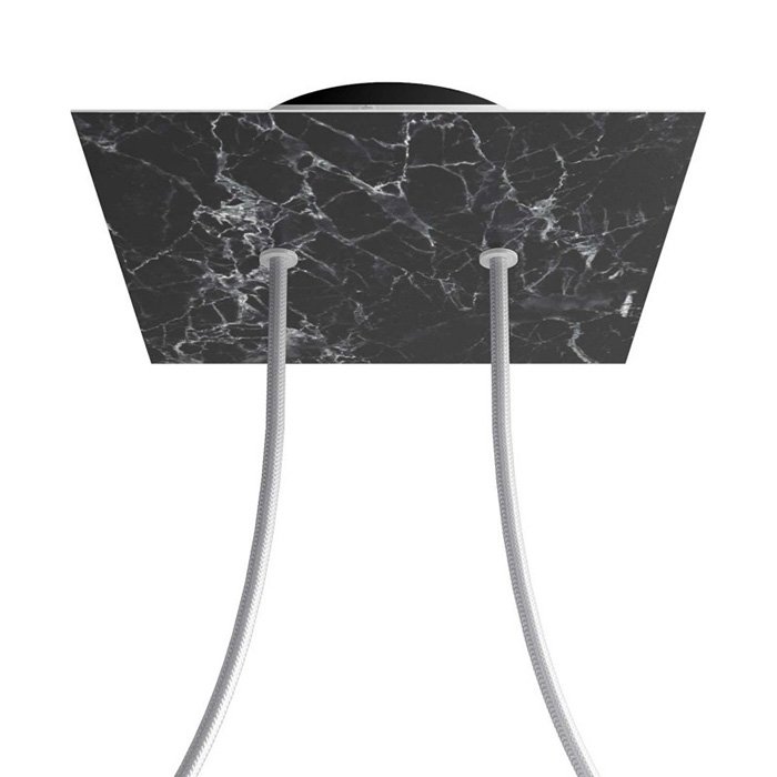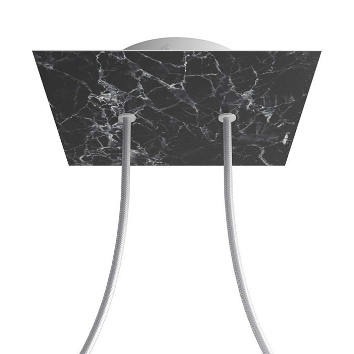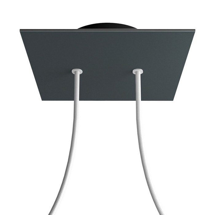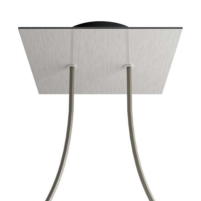 Metalowa rozeta sufitowa do lampy z dwoma otworami o oznaczeniu I2-Metalrosa łączy w sobie funkcjonalność z imponującymi wymiarami i precyzyjnym wykończeniem estetycznym, które po prostu przyciąga uwagę. Służy jako elegancki element maskujący i łączący do rozgałęzienia okablowania instalacji elektrycznej natynkowej, a jednocześnie umożliwia zawieszenie opraw oświetleniowych z dolnej części rozety. Jej imponujące wymiary 200x200 mm zapewniają estetyczne połączenie przewodów elektrycznych w maksymalnie 6 kierunkach (2x dolny + 4x na boku), a niewykorzystane wyjścia można zaślepić, aby zachować elegancję i integralność bezpieczeństwa.