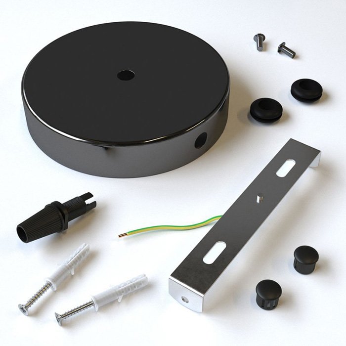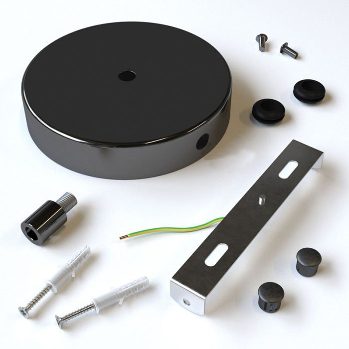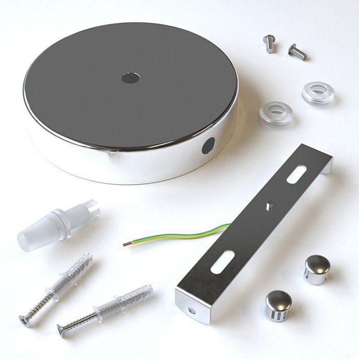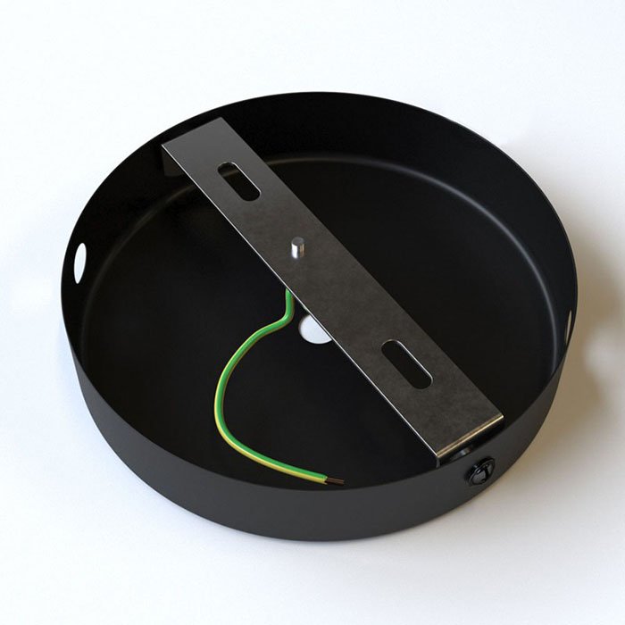 - Zakrycie wyjścia instalacji elektrycznej – ukrywa połączenia elektryczne między oprawą oświetleniową a kablem zasilającym na suficie lub ścianie.