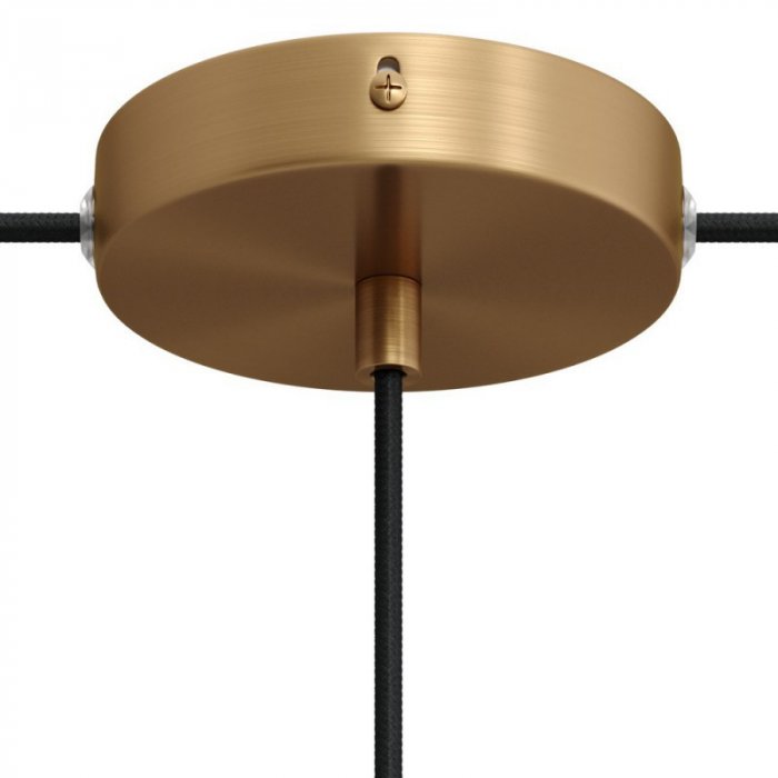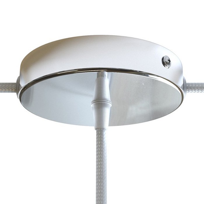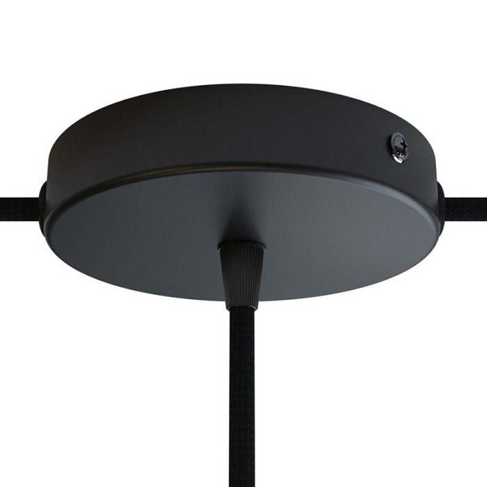 Metalowa osłona lampy rozgałęźna z trzema otworami (jeden środkowy + dwa na bokach) o oznaczeniu T3-Metalure łączy w sobie funkcjonalność i estetyczne wykończenie. Służy jako elegancki element maskujący i łączący do rozgałęziania okablowania instalacji elektrycznej powierzchniowej, a jednocześnie umożliwia zawieszenie oprawy oświetleniowej w jej centralnym punkcie. Jej kompaktowe wymiary o Ø 120 mm zapewniają estetyczne połączenie kabli elektrycznych, a niewykorzystane wyjścia można zaślepić, aby zachować elegancję i integralność bezpieczeństwa.