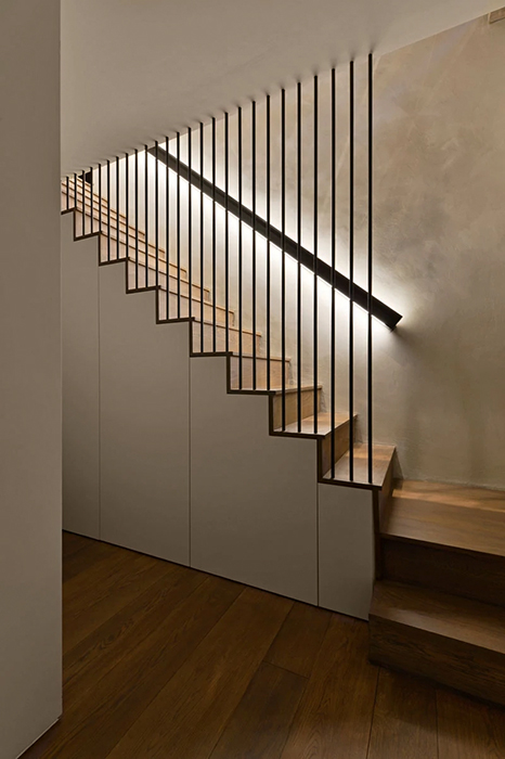Oświetlenie korytarza i przedpokoju jako pomieszczenia łączącego ma również swoją specyfikę. Oświetlając korytarz, warto pomyśleć przede wszystkim o trybie nocnym, w którym system oświetlenia orientacyjnego poprawi orientację w przestrzeni w półmroku lub ciemności bez konieczności zapalania głównych lamp.