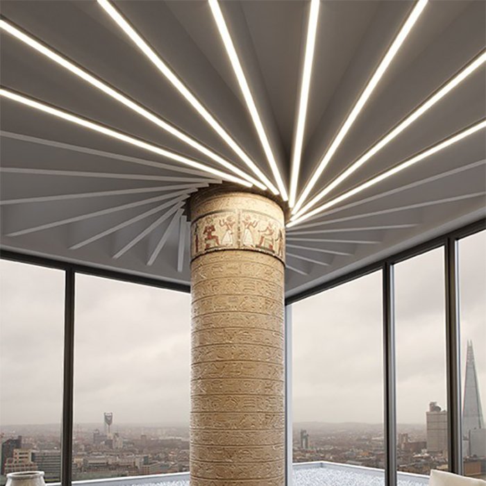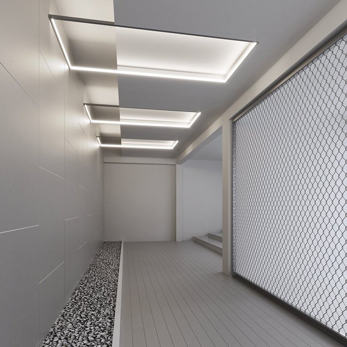 - Oświetlenie liniowe muru lub sufitu podwieszanego - oświetlenie sufitów podwieszanych jako oprawa liniowa.