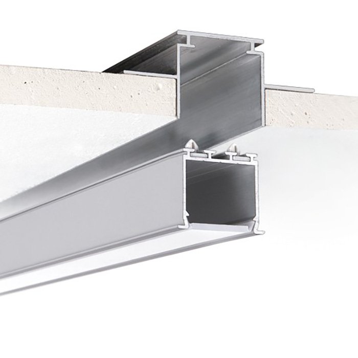 Profil LED wpuszczany LOKOM został wykonany z wysokiej jakości stopu aluminium, który gwarantuje bardzo dobrą sztywność, odporność mechaniczną oraz przewodność cieplną, ze względu na konstrukcję i wymiary produktu. Opisane właściwości sprawiają, że nadaje się do profesjonalnych instalacji oświetleniowych w następującej postaci: