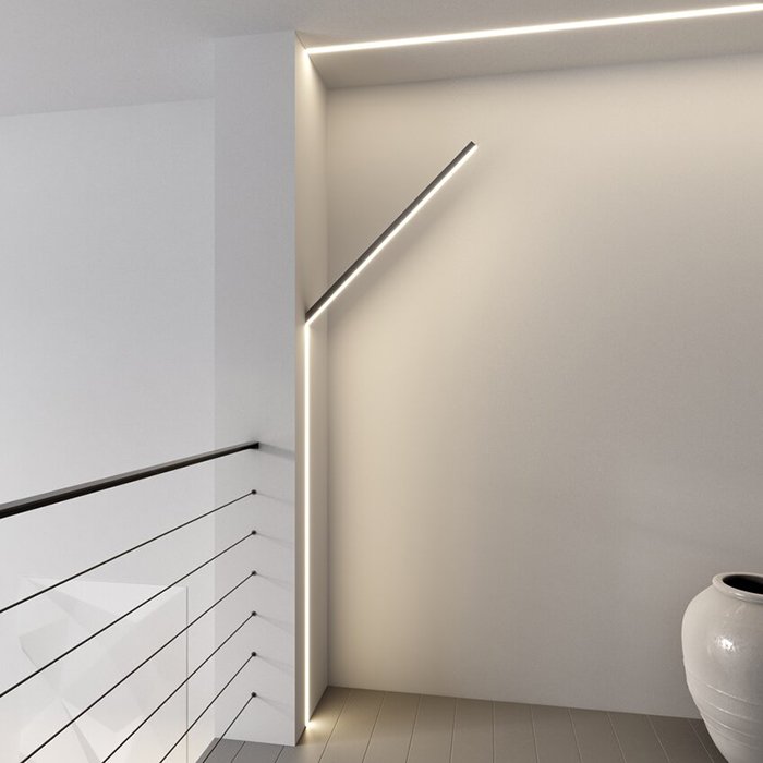 - GIZA-LL to kompatybilny i powiązany element oświetleniowy do profilu LED do GK KLUŚ GIZA-LL-T z możliwością przejścia linii światła z sufitu gipsowo-kartonowego do otwartej przestrzeni.