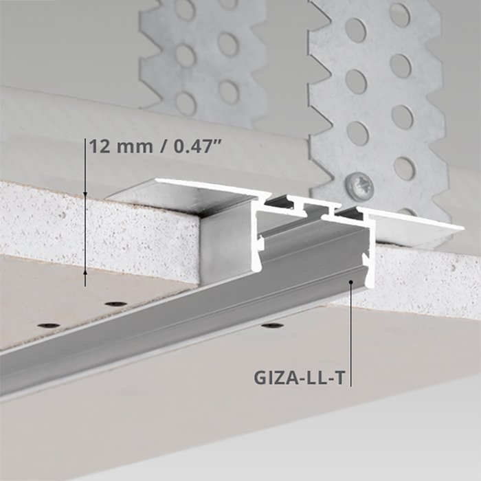 Profil LED do konstrukcji z płyt gipsowych GIZA-LL-T został wykonany z wysokiej jakości stopu aluminium, który gwarantuje bardzo dobrą sztywność, odporność mechaniczną oraz przewodność cieplną, ze względu na konstrukcję i wymiary produktu. Opisane właściwości sprawiają, że nadaje się do profesjonalnych instalacji oświetleniowych w następującej postaci: