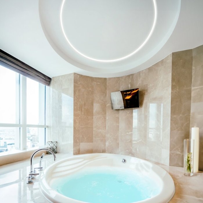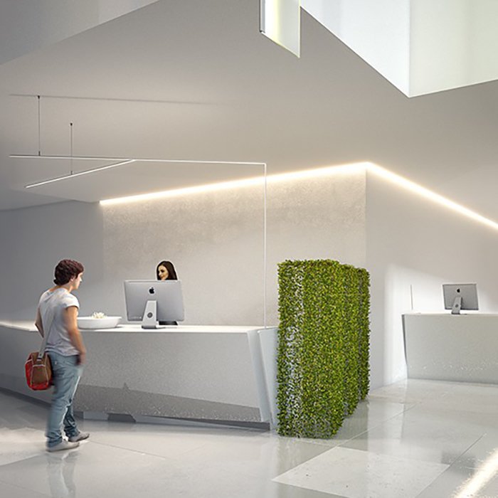 - Dzięki profilowi LED KOZUS można całkowicie pominąć konstrukcję sufitu, jeśli pozwala na to projekt budowlany i oświetleniowy.