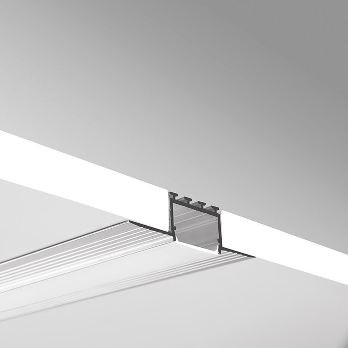Profil LED do konstrukcji z płyt gipsowych KOZUS został wykonany z wysokiej jakości stopu aluminium, który gwarantuje bardzo dobrą sztywność, odporność mechaniczną oraz przewodność cieplną, ze względu na konstrukcję i wymiary produktu. Opisane właściwości sprawiają, że nadaje się do profesjonalnych instalacji oświetleniowych w następującej postaci: