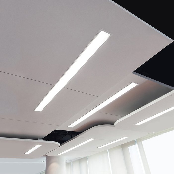 - Oświetlenie liniowe sufitowe do sufitu podwieszanego - oświetlenie sufitów podwieszanych jako oprawa liniowa.