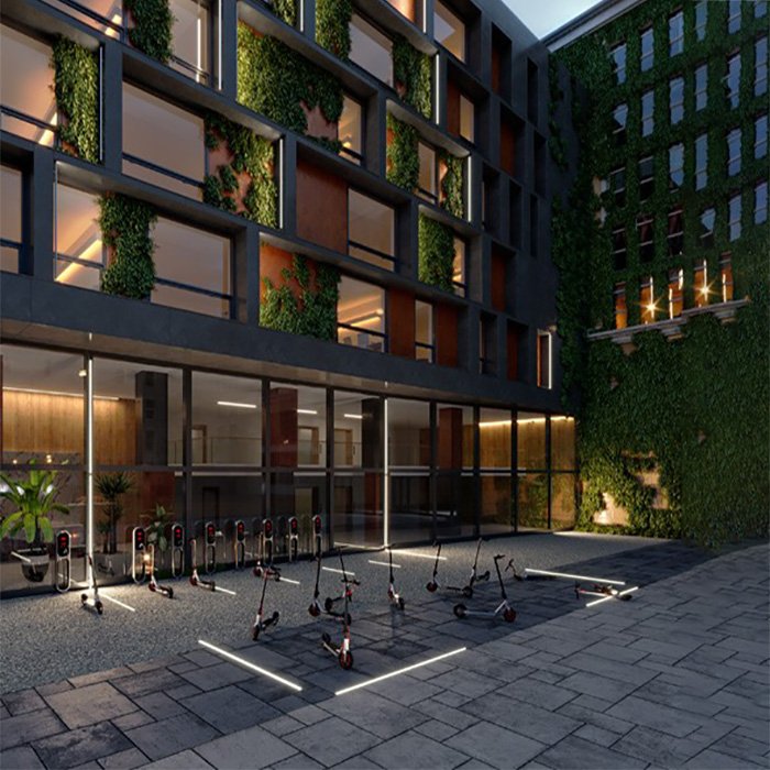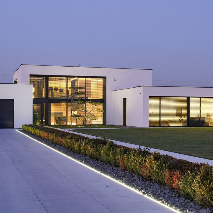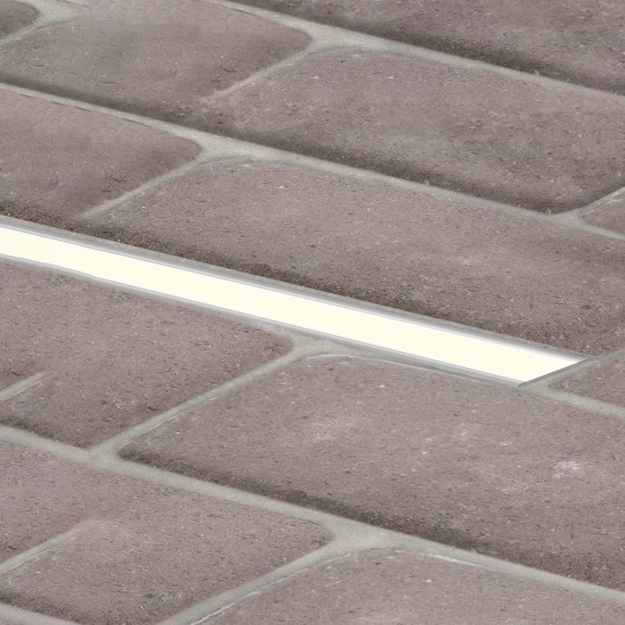 - Liniowe oświetlenie kostki brukowej i płyt chodnikowych - oświetlenie gruntowe taśmami LED w postaci lampy liniowej to wyjątkowo stylowy element w projektach komercyjnych i mieszkalnych.