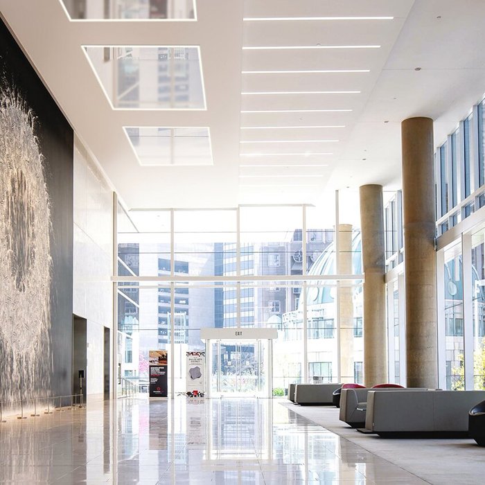 - Liniowe oświetlenie sufitu podwieszanego - oświetlenie obwodów sufitu napinanego w formie lampy liniowej.