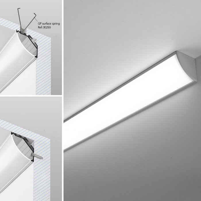 Profil LED KOPRO został wykonany z wysokiej jakości stopu aluminium, który gwarantuje bardzo dobrą sztywność, odporność mechaniczną oraz przewodność cieplną, ze względu na konstrukcję i wymiary produktu. Opisane właściwości sprawiają, że nadaje się do profesjonalnych instalacji oświetleniowych w następującej postaci: