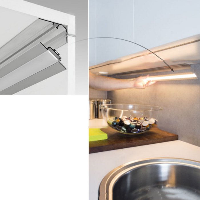 - Profil LED zbudowany jest z dwóch części, które łączy się plastikowym zatrzaskiem TEKNIK.