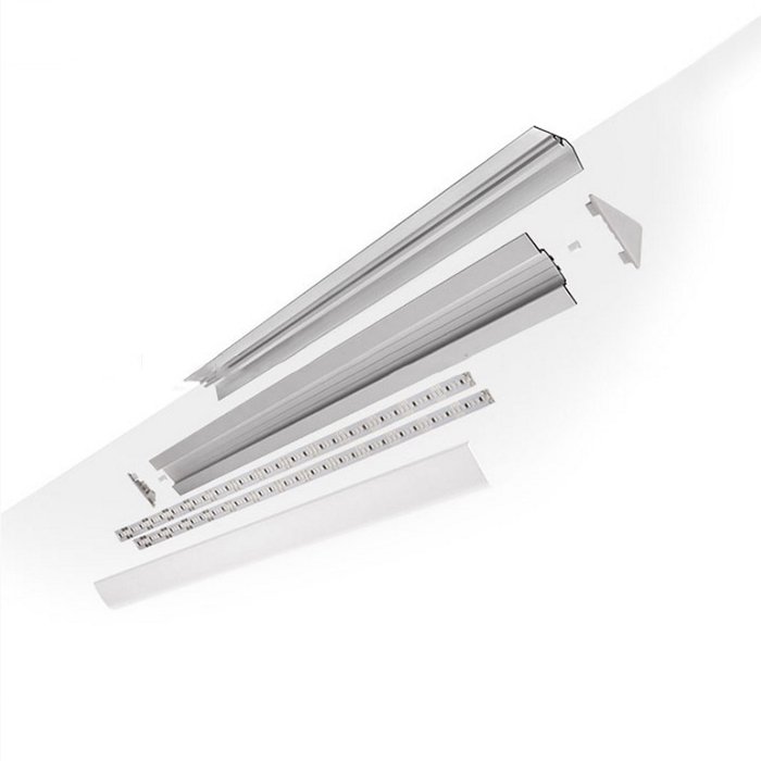 - Montaż 2x taśma LED o szerokości maks. 11 mm | Aby uzyskać ciągłą linię światła bez widocznych punktów diod LED zalecamy >180 diod LED / 1 metr bieżący (ten parametr wpływa na wybór kompatybilnego dyfuzora).