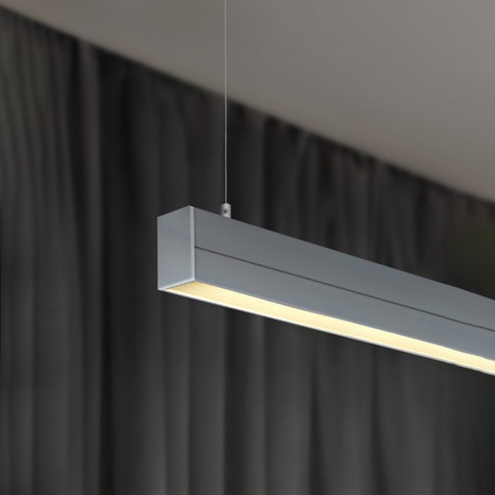 - Wiszące oświetlenie linearne o geometrycznych kształtach - oświetlenie przestrzeni za pomocą zwieszanej oprawy sufitowej. | Nadaje się na oświetlenie biur i przestrzeni komercyjnych.