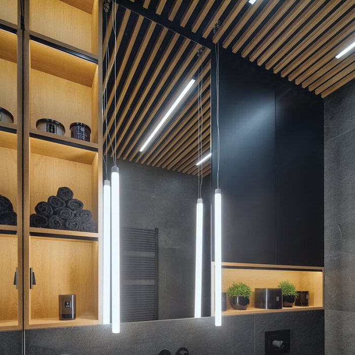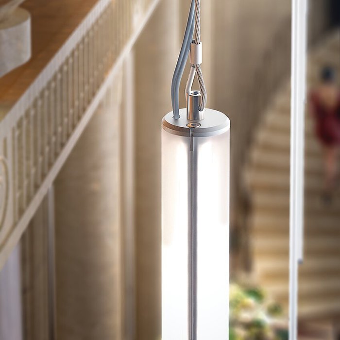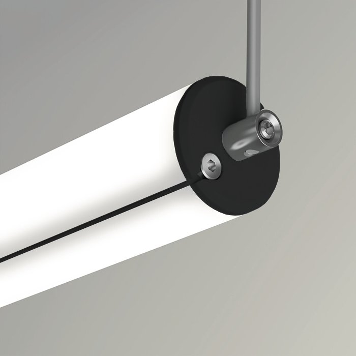 - Poziome lub pionowe zwieszenie z sufitu - tubowy profil LED może zostać zwieszony i zasilany (DC 12 V/24 V) za pomocą specjalnych akcesoriów montażowych i stalowej linki lub nierdzewnego metalowego wysięgnika.
