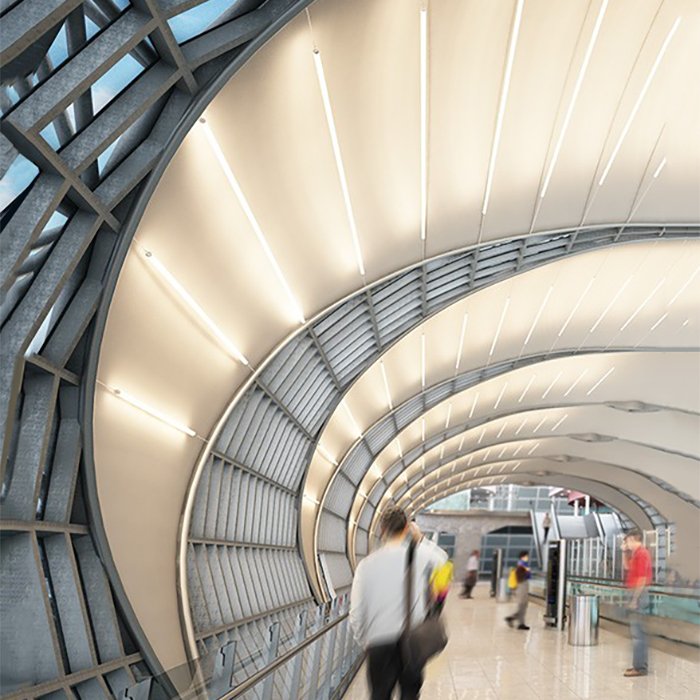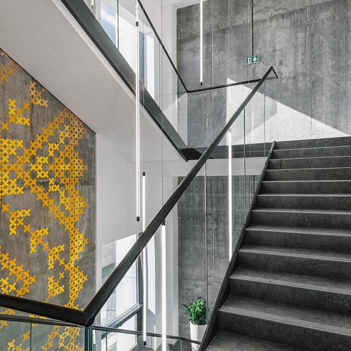 - Oświetlenie tubowe - z możliwością całopowierzchniowego oświetlenia. Rozwiązanie to nadaje się do zastosowania jako oświetlanie dużych powierzchni schodów lub oświetlenie efektowe.