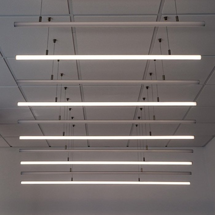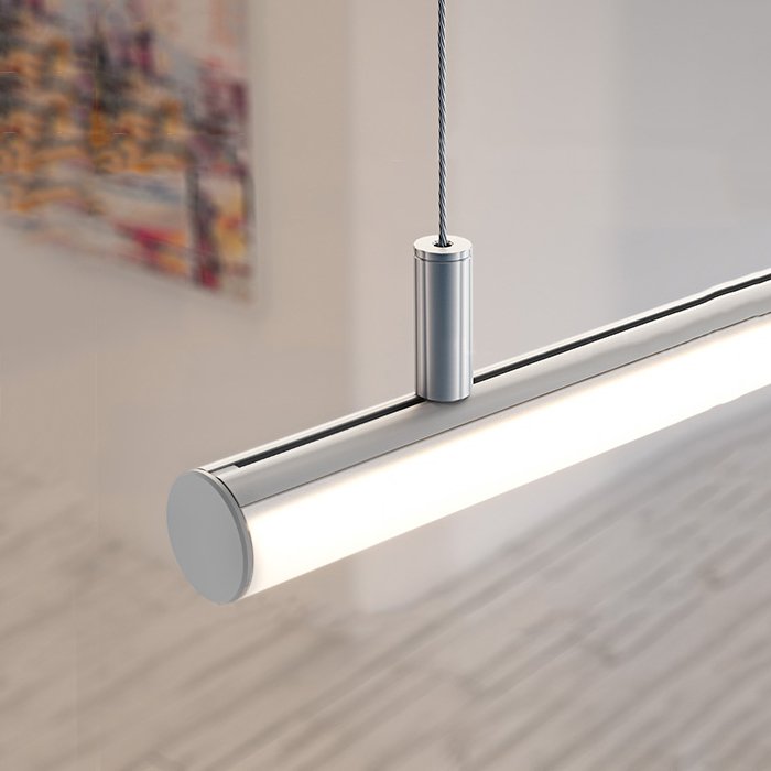 - Poziome lub pionowe zwieszenie z sufitu - tubowy profil LED może zostać zwieszony i zasilany (DC 12 V/24 V) za pomocą specjalnych akcesoriów montażowych i stalowej linki lub nierdzewnego metalowego wysięgnika. | Główne zastosowanie.