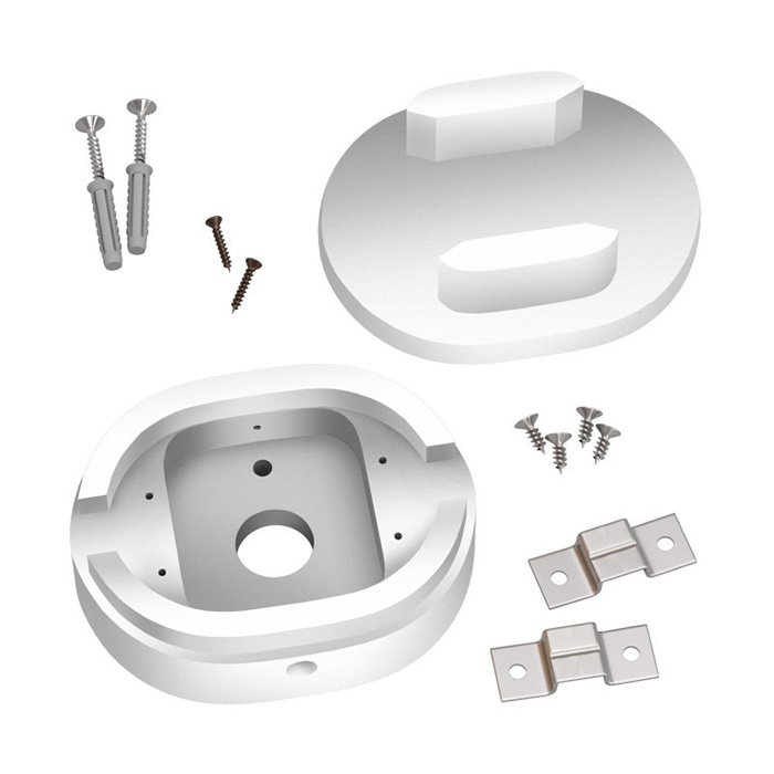 - Zakrycie wyjścia instalacji elektrycznej – ukrywa połączenia elektryczne instalacji elektrycznej natynkowej na suficie lub ścianie.