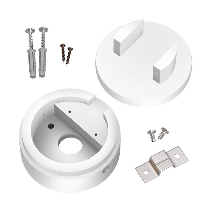 - Zakrycie wyjścia instalacji elektrycznej – ukrywa połączenia elektryczne instalacji elektrycznej natynkowej na suficie lub ścianie.