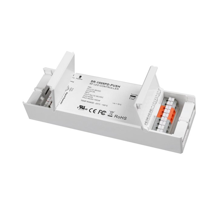 Ściemniacz radiowy do taśm LED o oznaczeniu SR-1009NPD-PUSH reprezentuje czołówkę w dziedzinie nowoczesnego sterowania oświetleniem jednokolorowymi taśmami CCT, RGB i RGBW za pomocą sygnału radiowego. Bezprzewodowe sterowanie oświetleniem RF zapewnia komfort użytkowania, zwiększa elastyczność i przyczynia się do oszczędzania energii elektrycznej. Ściemniacz radiowy SR-1009NPD-PUSH to produkt od uznawanego światowego producenta systemów sterowania oświetleniem Sunricher. Firma jest uznawana przez profesjonalistów i opinię publiczną za producenta innowacyjnych rozwiązań z wyjątkowym naciskiem na jakość produktu, co czyni ją preferowanym partnerem dla profesjonalistów z branży oświetleniowej na całym świecie. Ściemniacz radiowy SR-1009NPD-PUSH umożliwia sterowanie różnymi taśmami LED z wybranej konfiguracji podłączenia: