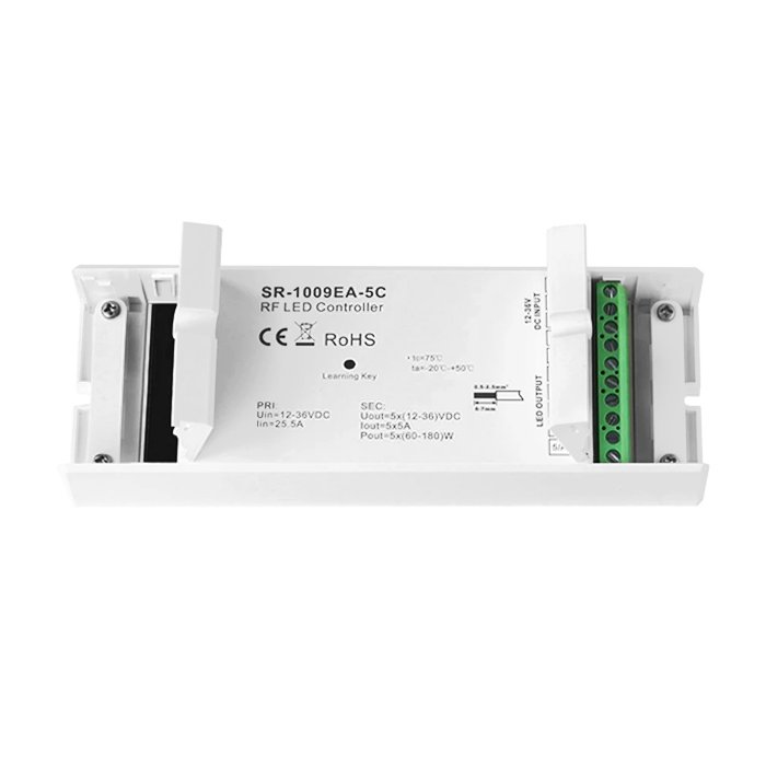 Ściemniacz radiowy do taśm LED o oznaczeniu SR-1009EA-5C reprezentuje czołówkę w dziedzinie nowoczesnego sterowania oświetleniem taśmami RGBWW za pomocą sygnału radiowego. Bezprzewodowe sterowanie oświetleniem RF zapewnia komfort użytkowania, zwiększa elastyczność i przyczynia się do oszczędzania energii elektrycznej. Ściemniacz radiowy SR-1009EA-5C to produkt od uznawanego światowego producenta systemów sterowania oświetleniem Sunricher. Firma jest uznawana przez profesjonalistów i opinię publiczną za producenta innowacyjnych rozwiązań z wyjątkowym naciskiem na jakość produktu, co czyni ją preferowanym partnerem dla profesjonalistów z branży oświetleniowej na całym świecie. Ściemniacz radiowy SR-1009EA-5C umożliwia sterowanie różnymi taśmami LED z wybranej konfiguracji podłączenia: