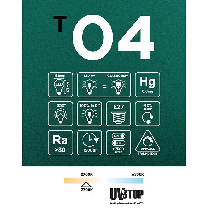 Żarówkę LED BeBulbs-T G125 możesz zastosować wszędzie tam, gdzie funkcjonalność spotyka się z designem. Doskonale sprawdzi się jako zastępcze źródło światła dla Twojej lampy, ale także jako element kreatywnej produkcji własnego oświetlenia. Do indywidualnych projektów polecamy zastosowanie #tablink#objimky#oprawki E27## lub inne części do produkcji lamp, które pozwolą na stworzenie oryginalnego oświetlenia dokładnie według Twoich pomysłów.