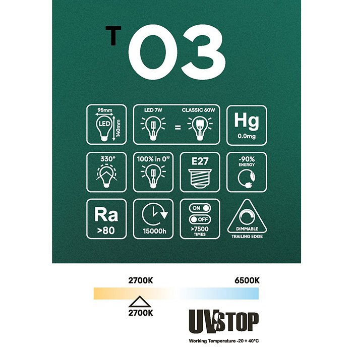 Żarówkę LED BeBulbs-T G95 możesz zastosować wszędzie tam, gdzie funkcjonalność spotyka się z designem. Doskonale sprawdzi się jako zastępcze źródło światła dla Twojej lampy, ale także jako element kreatywnej produkcji własnego oświetlenia. Do indywidualnych projektów polecamy zastosowanie #tablink#objimky#oprawki E27## lub inne części do produkcji lamp, które pozwolą na stworzenie oryginalnego oświetlenia dokładnie według Twoich pomysłów.
