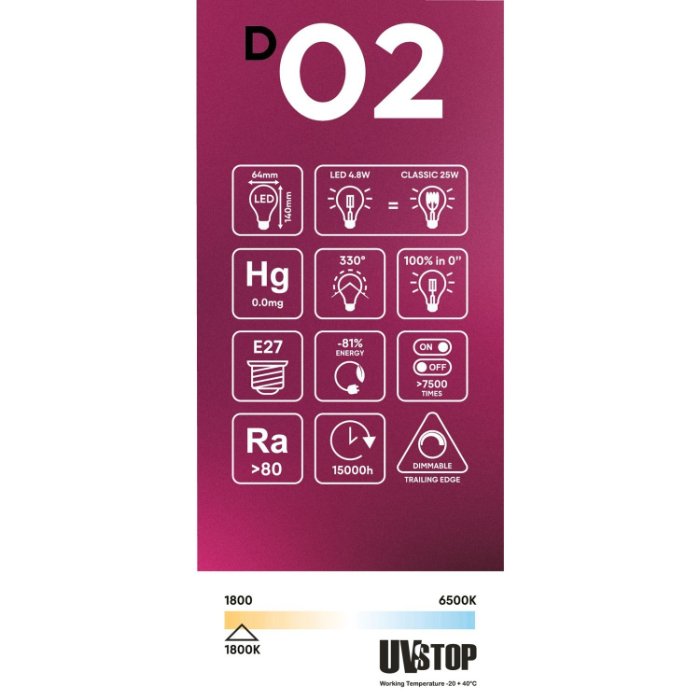 - 1800K | 4,8W | 250 Lm | zamiennik klasycznej żarówki 25 W