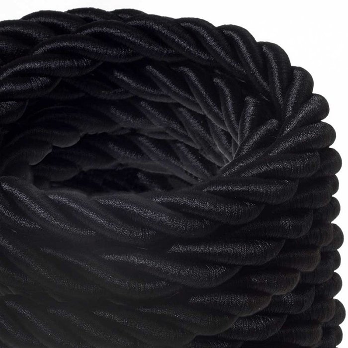 Błyszczący czarny kabel w sznurze 2XL został wykonany ze sztucznego jedwabiu. Cechą charakterystyczną jedwabnego sznura spiralnego z przewodem elektrycznym jest piękna błyszcząca powierzchnia o jasnym odwzorowaniu koloru. Został on wykonany przy użyciu nowej technologii, umożliwiającej osiągnięcie zupełnie nowego poziomu wykończenia. Sztuczny jedwab to efektowny materiał nadający się do produkcji designowych opraw oświetleniowych w stylu nowoczesnym i retro. Splot poszczególnych przewodów w spiralę nadaje błyszczącemu czarnemu sznurowi tekstylnemu z kablem niezwykły i imponujący wygląd. Kabel w sznurze jedwabnym typu 24NERO przemawia do wszystkich twórczych dusz, ponieważ po prostu przyciąga uwagę.