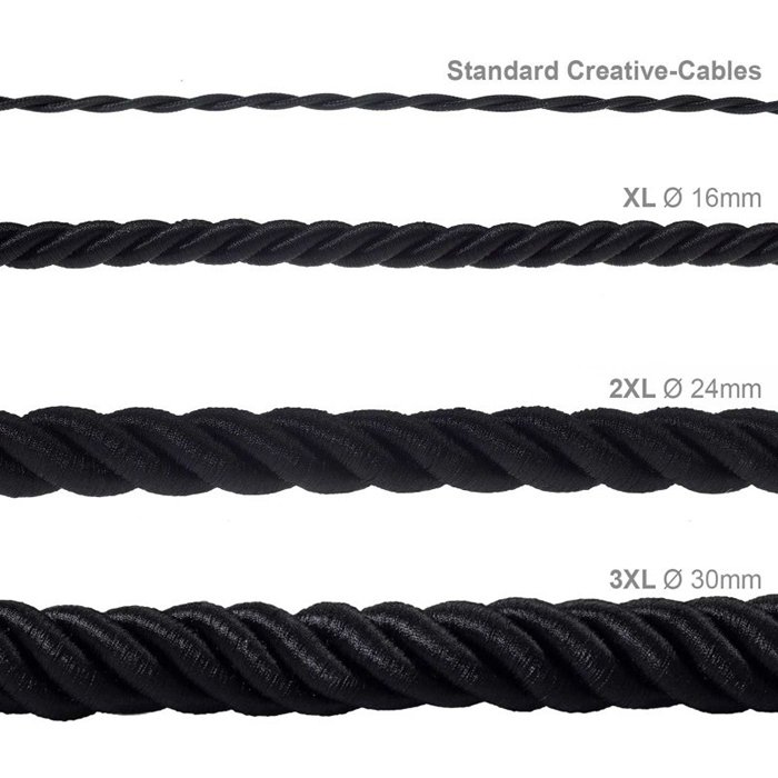 Błyszcząca czarna lina jedwabna z przewodem elektrycznym, o rozmiarze 2XL 24NERO i średnicy 24 mm, jest wyjątkowym produktem przypominającym klasyczny sznur. Ma ona imponujący wygląd dzięki wysokiej jakości wykonaniu i zastosowanym materiałom. Czarny sznur jedwabny z kablem elektrycznym znajdzie zastosowanie przy tworzeniu oświetlenia i opraw oświetleniowych dla wnętrz w stylu nowoczesnym i retro. Wszystkie komponenty do tworzenia opraw oświetleniowych muszą odpowiadać średnicy sznura z kablem o oznaczeniu 2XL. Sznur z kablem to doskonały element wystroju wnętrz. Bądź kreatywny, uwolnij swoje fantazje i znajdź swój styl podczas tworzenia opraw oświetleniowych.