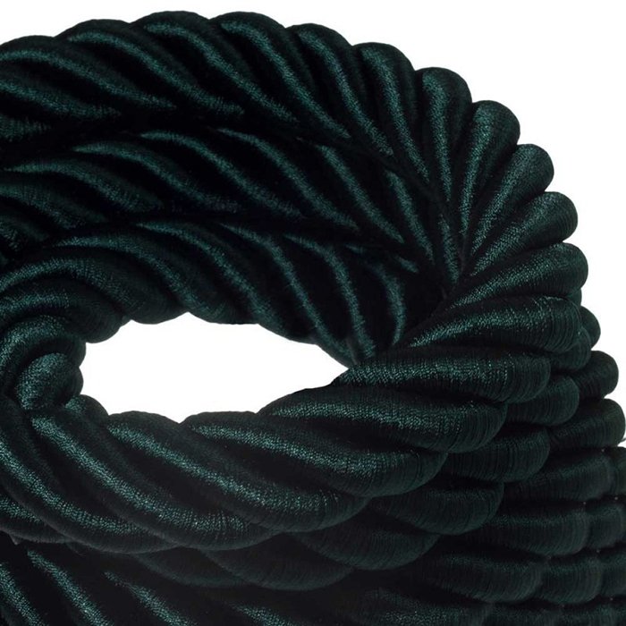 Ciemnozielony kabel w sznurze 3XL o wysokim połysku został wykonany ze sztucznego jedwabiu. Cechą charakterystyczną jedwabnego sznura spiralnego z przewodem elektrycznym jest piękna błyszcząca powierzchnia o jasnym odwzorowaniu koloru. Został on wykonany przy użyciu nowej technologii, umożliwiającej osiągnięcie zupełnie nowego poziomu wykończenia. Sztuczny jedwab to efektowny materiał nadający się do produkcji designowych opraw oświetleniowych w stylu nowoczesnym i retro. Splot poszczególnych przewodów w spiralę nadaje błyszczącemu ciemnozielonemu sznurowi tekstylnemu z kablem niezwykły i imponujący wygląd. Kabel w sznurze jedwabnym typu 30VERDE przemawia do wszystkich twórczych dusz, ponieważ po prostu przyciąga uwagę.