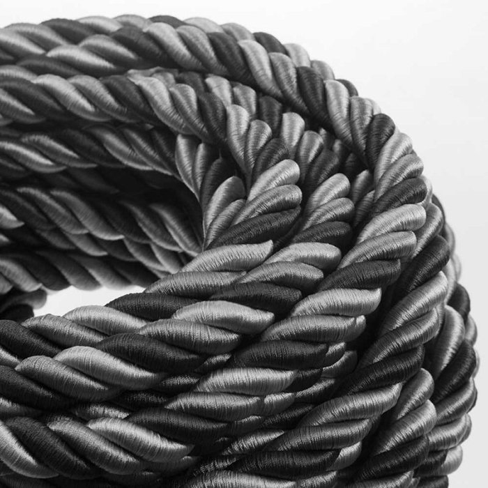 Kabel w sznurze 2XL został wykonany ze sztucznego jedwabiu. Cechą charakterystyczną jedwabnego sznura spiralnego z przewodem elektrycznym jest piękna błyszcząca powierzchnia o jasnym odwzorowaniu koloru w stylu Regimental. Został on wykonany przy użyciu nowej technologii, umożliwiającej osiągnięcie zupełnie nowego poziomu wykończenia. Sztuczny jedwab to efektowny materiał nadający się do produkcji designowych opraw oświetleniowych w stylu nowoczesnym i retro. Splot poszczególnych kolorowych przewodów w spiralę nadaje niezwykły i imponujący wygląd sznurowi tekstylnemu z kablem w wersji Orleans. Kabel w sznurze jedwabnym typu 24ORLEANS przemawia do wszystkich twórczych dusz, ponieważ po prostu przyciąga uwagę.