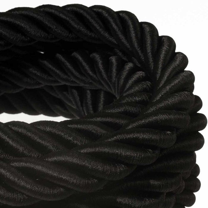 Błyszczący czarny kabel w sznurze 3XL został wykonany ze sztucznego jedwabiu. Cechą charakterystyczną jedwabnego sznura spiralnego z przewodem elektrycznym jest piękna błyszcząca powierzchnia o jasnym odwzorowaniu koloru. Został on wykonany przy użyciu nowej technologii, umożliwiającej osiągnięcie zupełnie nowego poziomu wykończenia. Sztuczny jedwab to efektowny materiał nadający się do produkcji designowych opraw oświetleniowych w stylu nowoczesnym i retro. Splot poszczególnych przewodów w spiralę nadaje błyszczącemu czarnemu sznurowi tekstylnemu z kablem niezwykły i imponujący wygląd. Kabel w sznurze jedwabnym typu 30NERO przemawia do wszystkich twórczych dusz, ponieważ po prostu przyciąga uwagę.