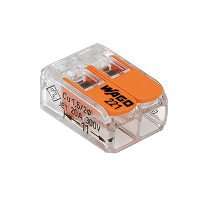 Szybkozłączka elektryczna WAGO 221-412 2x4mm² jest przeznaczona do szybkiego, niezawodnego i bezśrubowego połączenia dwóch przewodów. Zapewnia niezawodny kontakt bez konieczności użycia narzędzi – wystarczy podnieść dźwignię, włożyć przewód i ponownie ją opuścić. Przezroczysty korpus umożliwia łatwą kontrolę wzrokową prawidłowego włożenia przewodu, a pomarańczowa dźwignia sterująca zapewnia wygodne otwieranie i zamykanie miejsca zaciskania. Szybkozłączka jest odpowiednia dla wszystkich typów przewodów miedzianych: